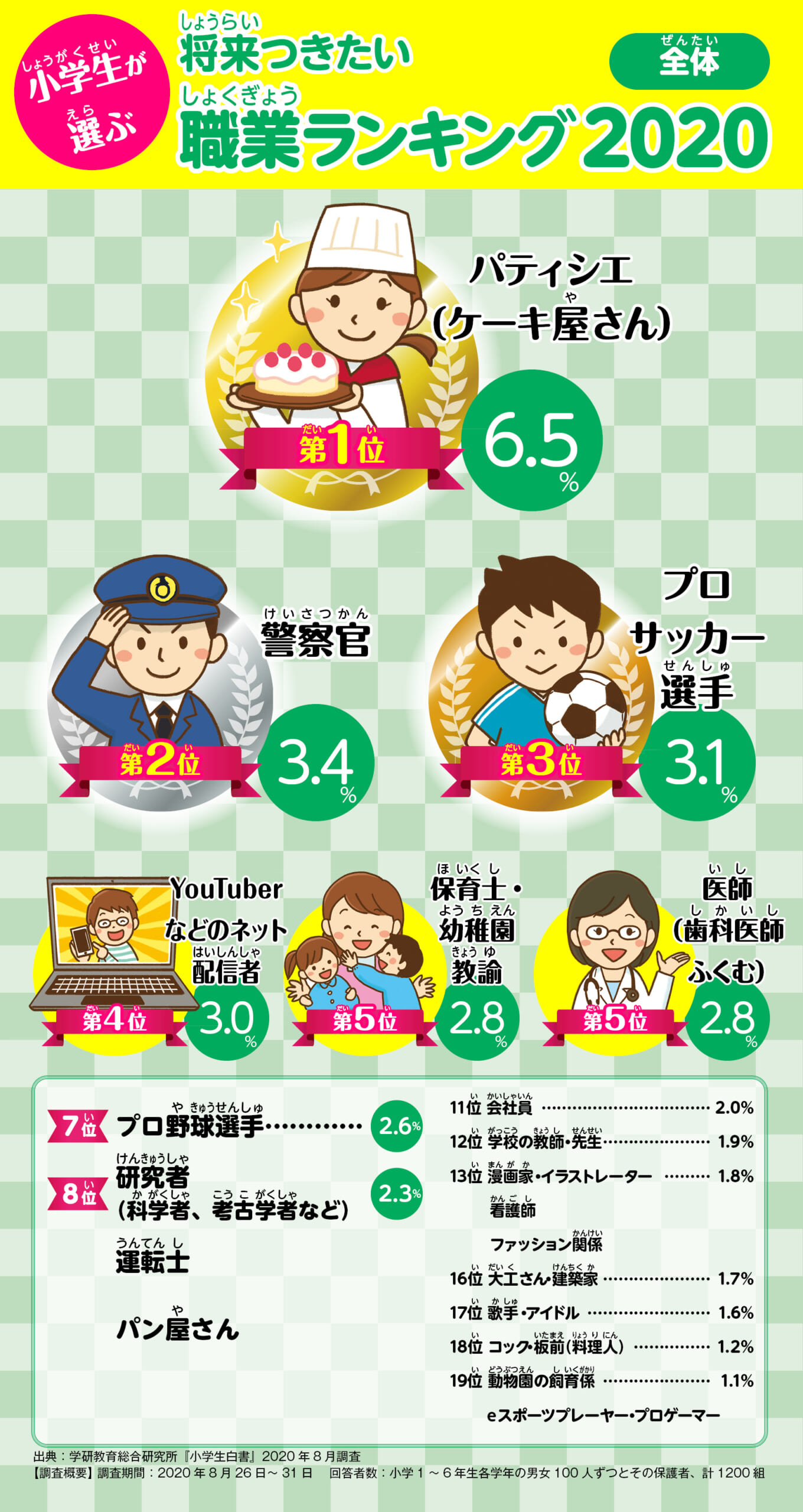 くわしく見る小学生が選ぶ 将来つきたい職業(2020年版)
