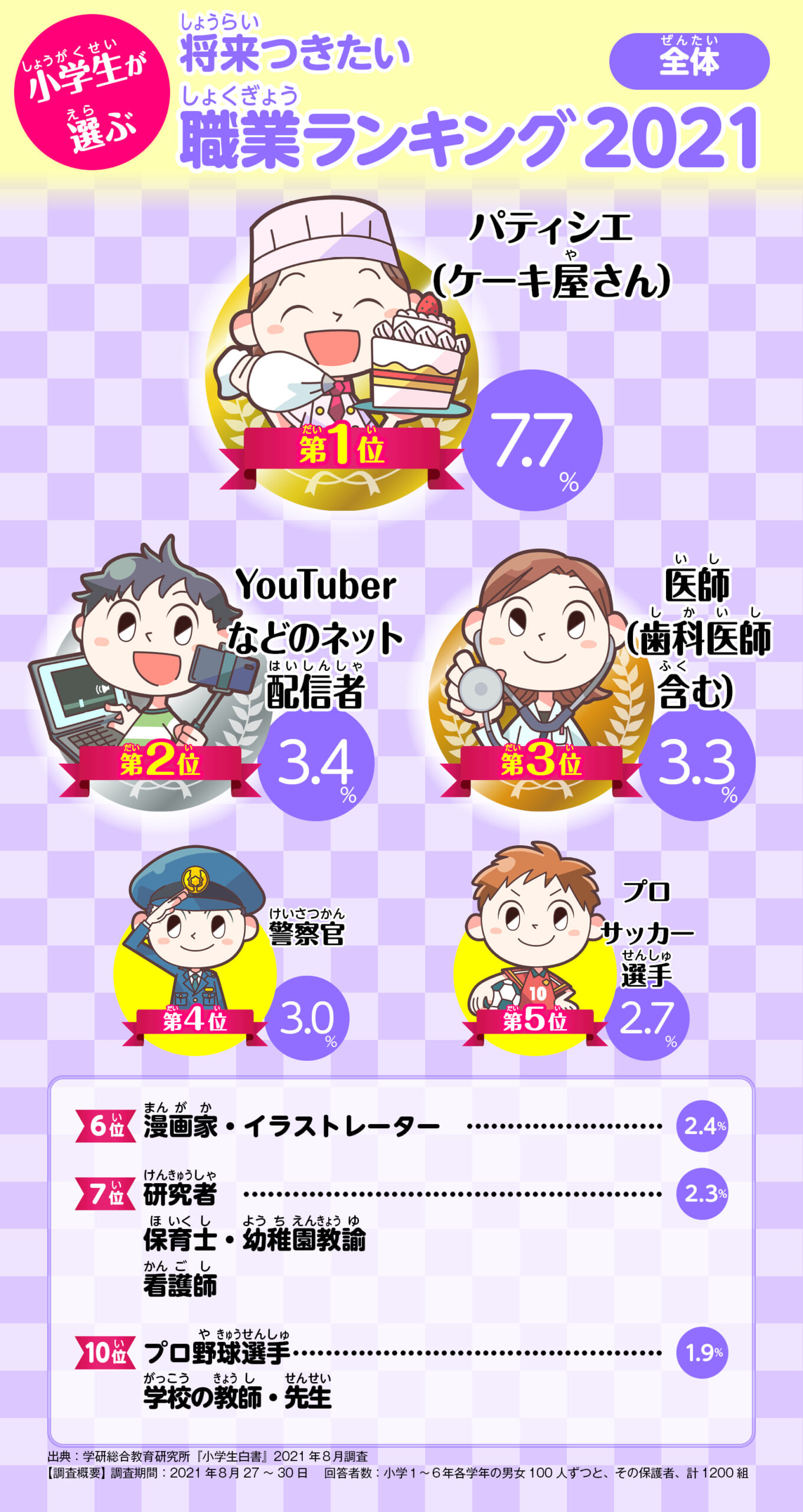 くわしく見る小学生が選ぶ 将来つきたい職業(2021年版)