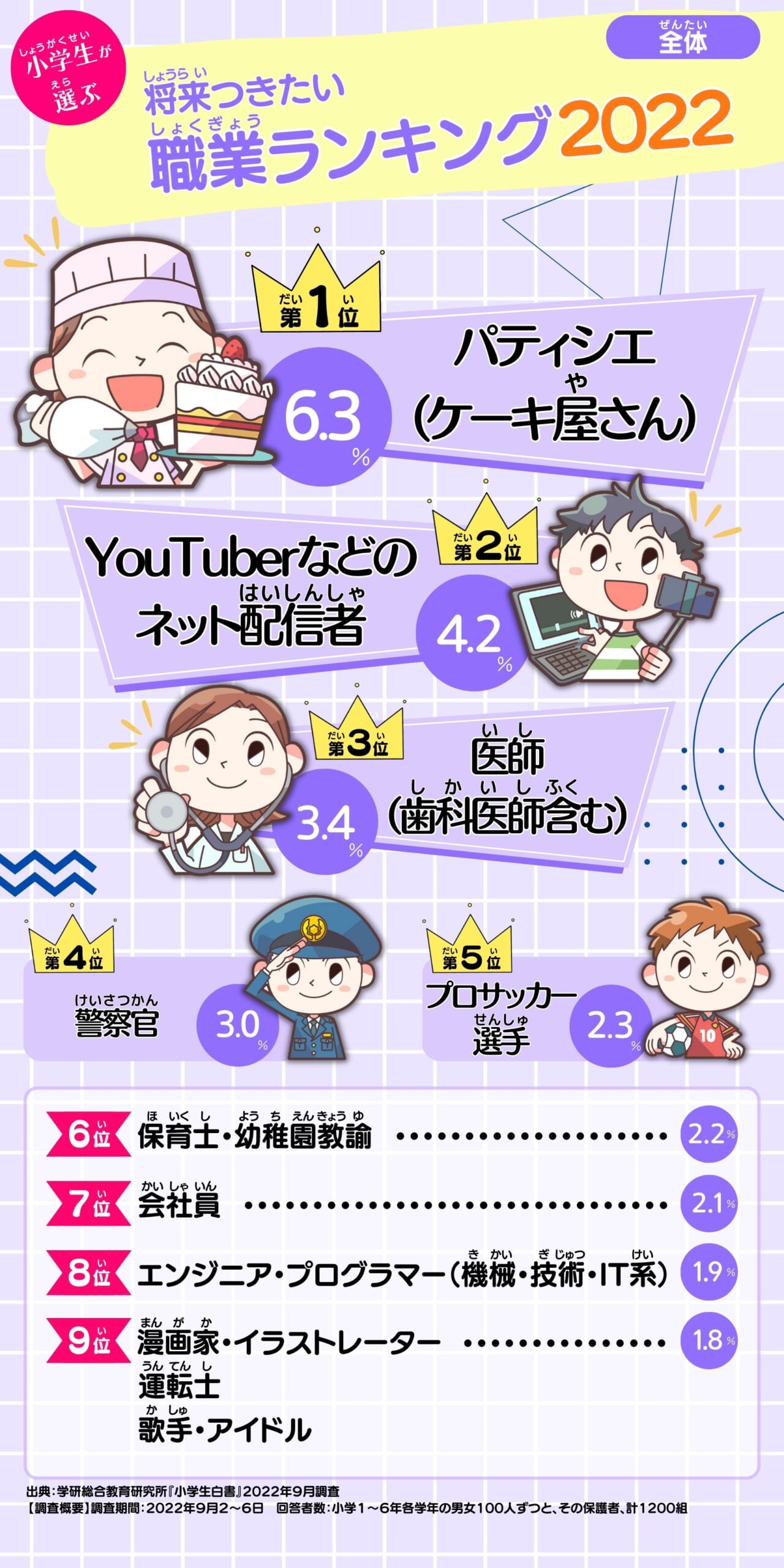 くわしく見る小学生が選ぶ 将来つきたい職業(2022年版)