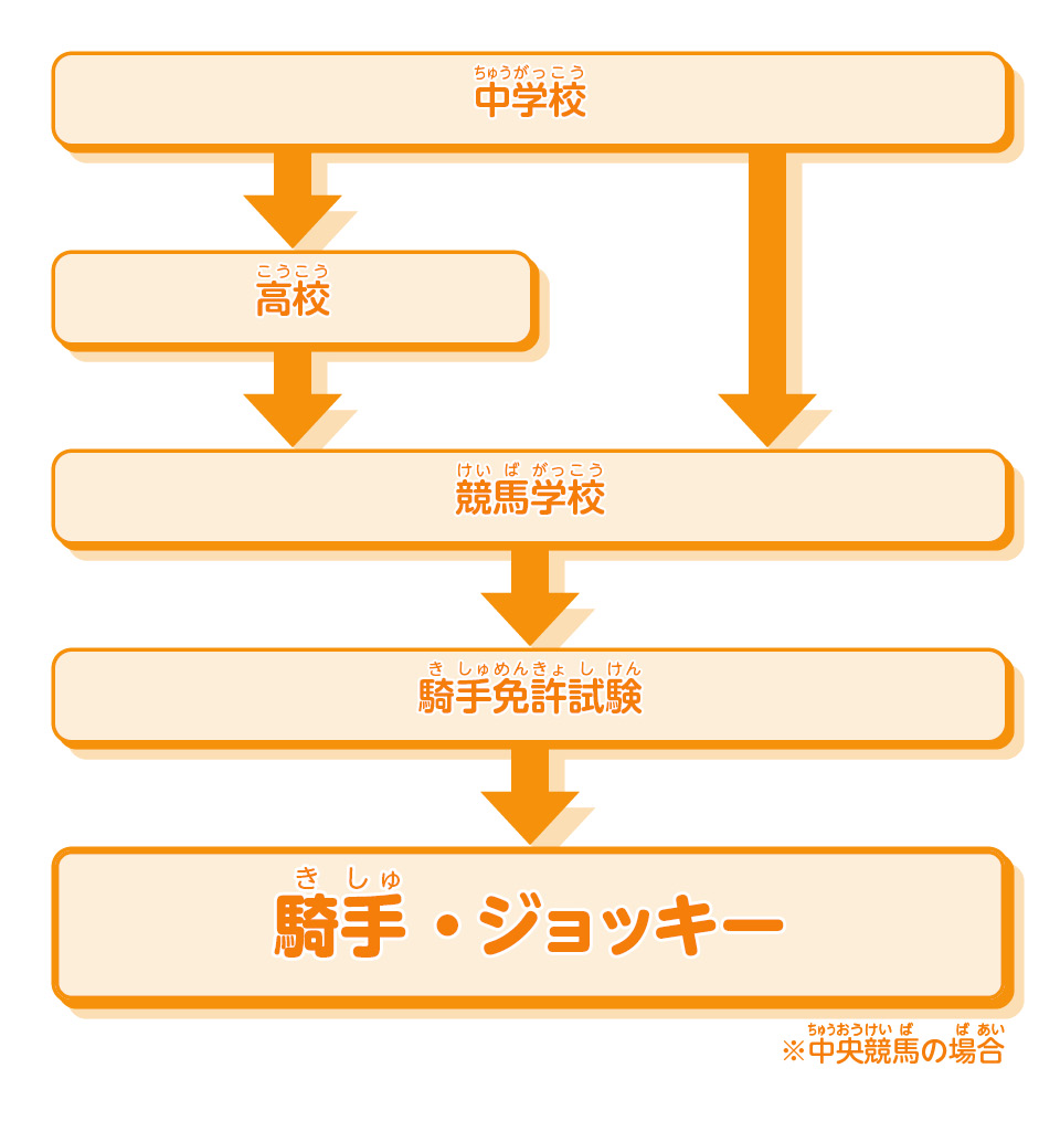 騎手の仕事につくための主なルートが一目で分かるチャートだよ!