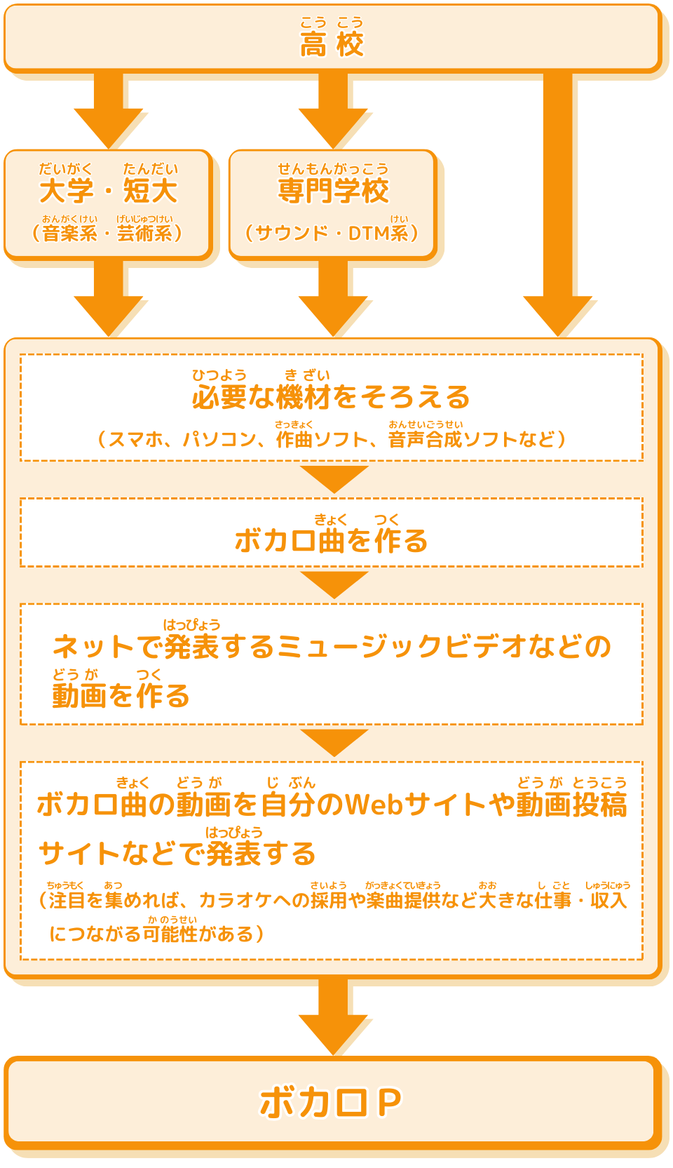 ボカロPの仕事につくための主なルートが一目で分かるチャートだよ!