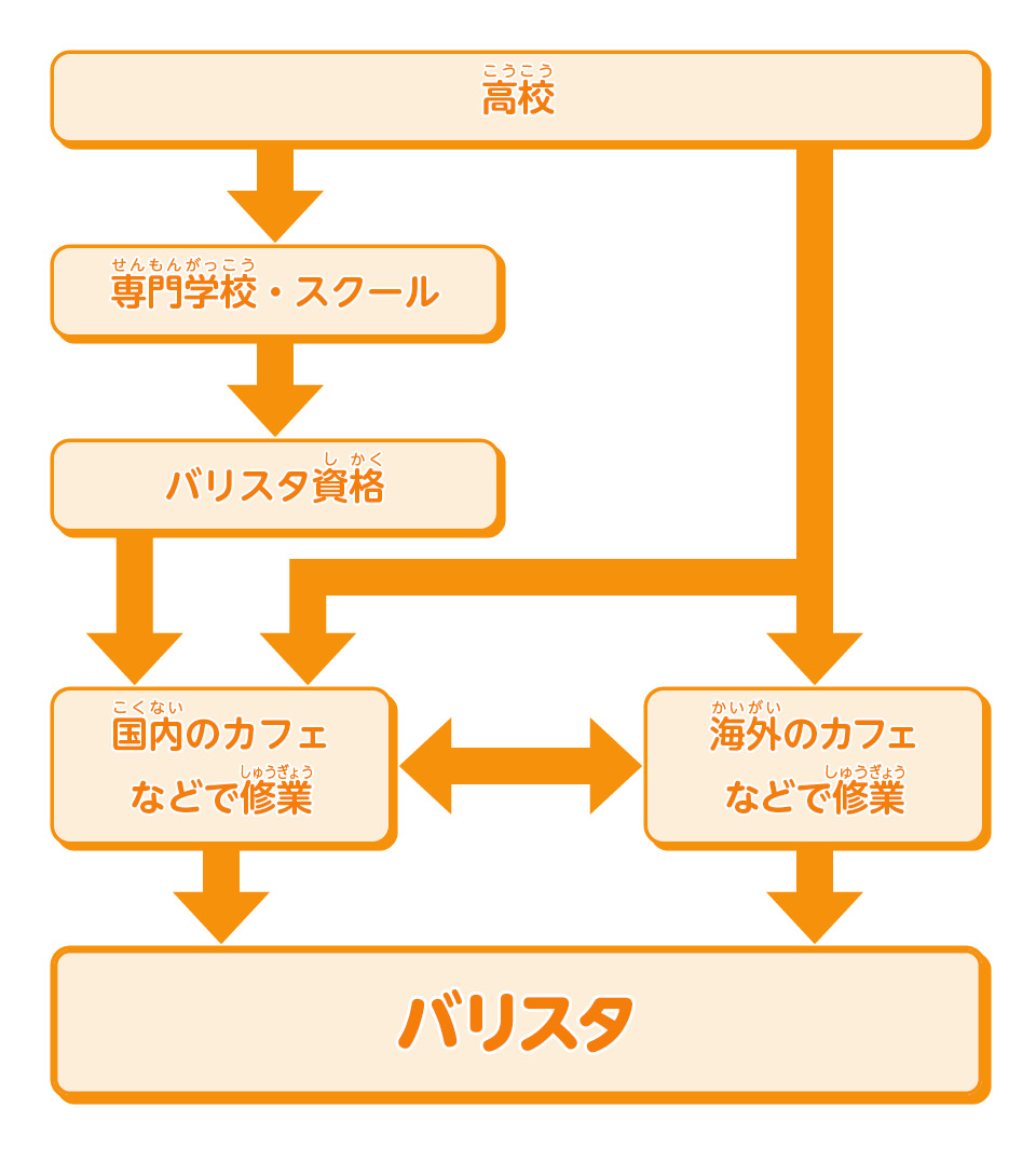 バリスタの仕事につくための主なルートが一目で分かるチャートだよ!