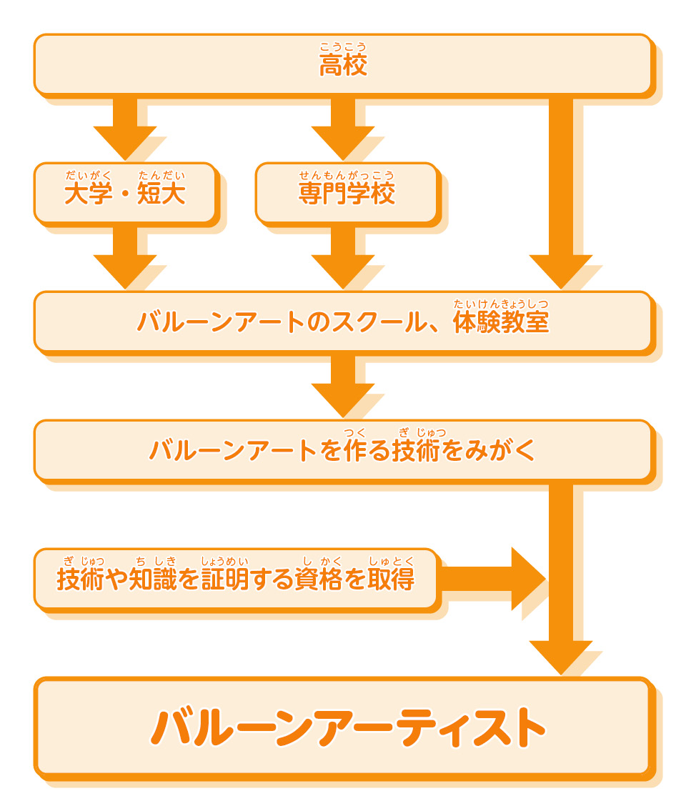 バルーンアーティストの仕事につくための主なルートが一目で分かるチャートだよ!