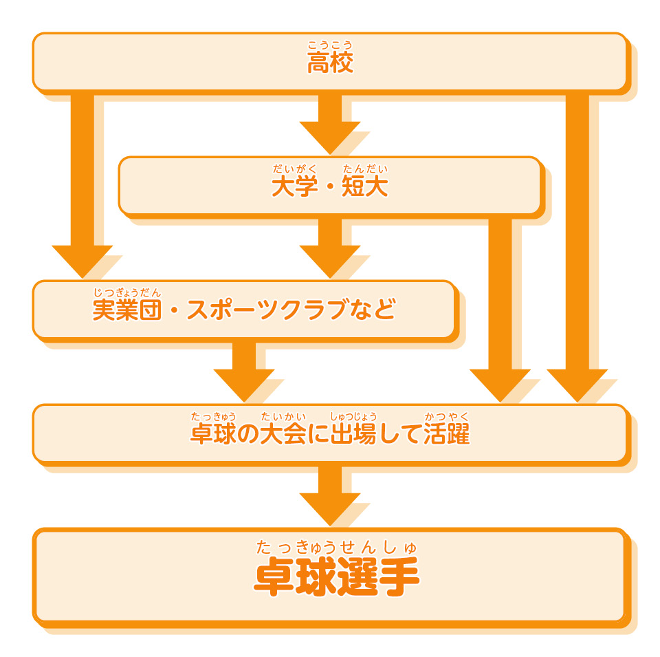 卓球選手の仕事につくための主なルートが一目で分かるチャートだよ!