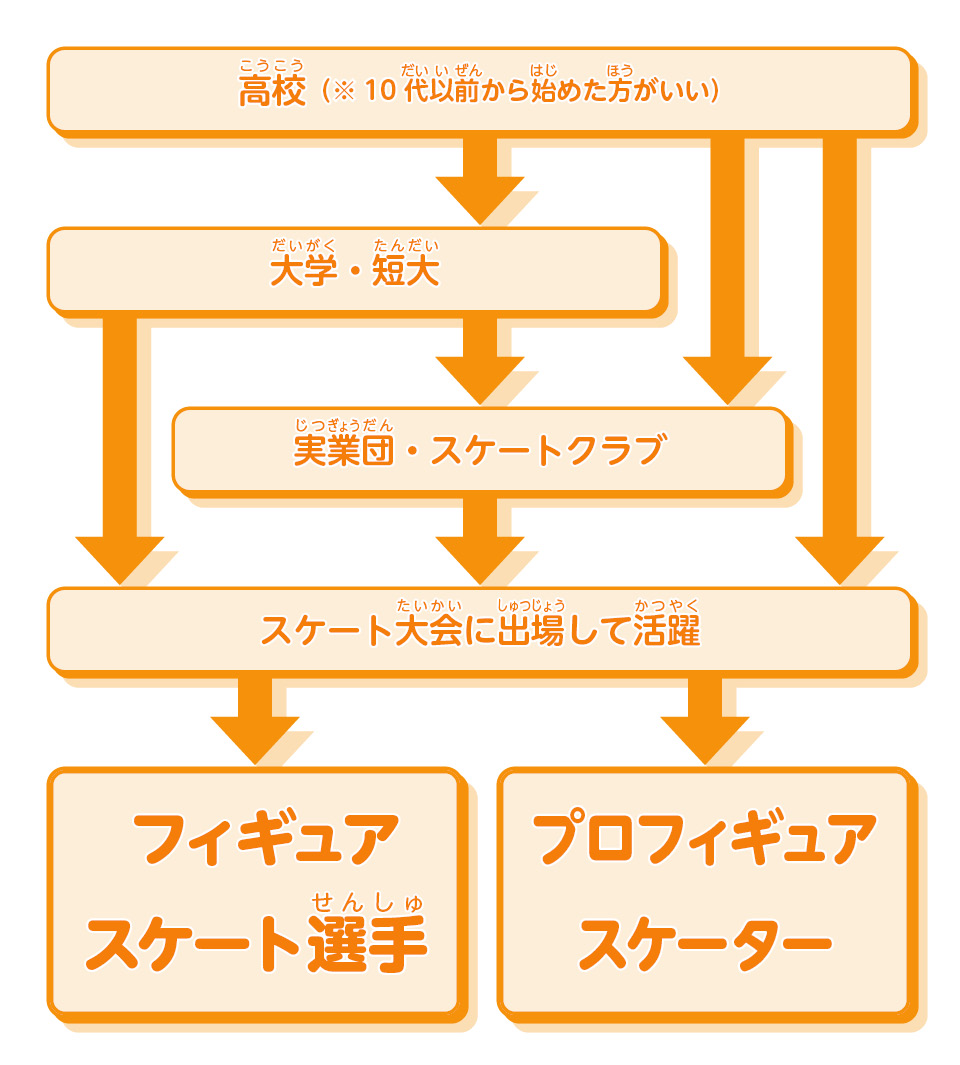 フィギュアスケート選手の仕事につくための主なルートが一目で分かるチャートだよ!