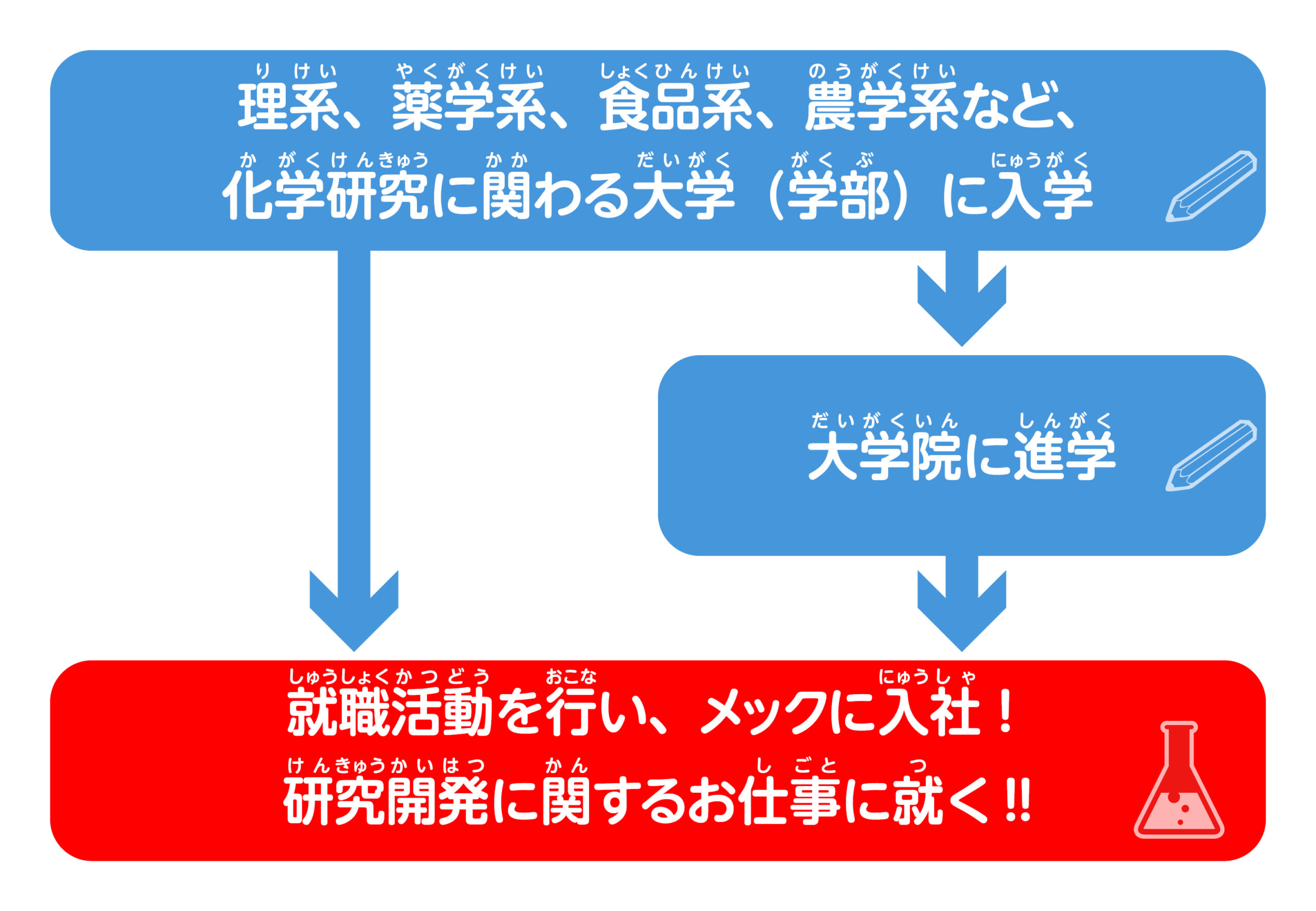 メックの研究者には、理系だけでなく、薬学系や食品系など、いろいろな勉強をしてきた人がいるんだって。