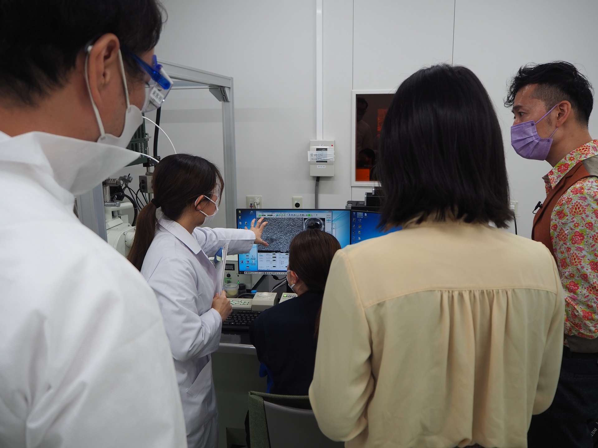 工場に入るときは、全員で白衣を来てエアシャワー!
